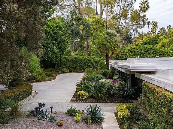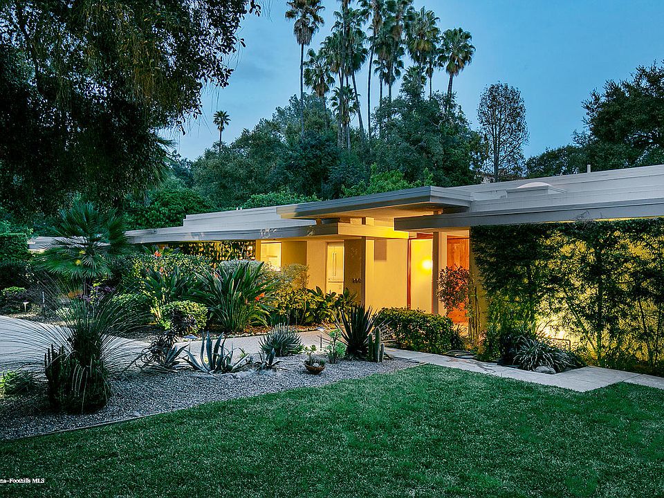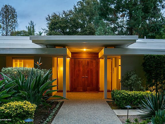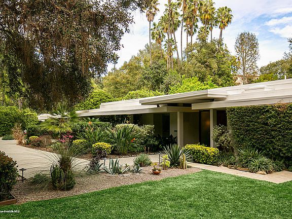 The Kirtlan Home! Prominent San Rafael neighborhood is the sought-after location of this meticulous mid-century modern estate sited on nearly half an acre. Surrounded by extraordinary estate manors and tucked away under mature trees, South San Rafael is arguably one of the finest streets in Pasadena. In the past few years, this sophisticated neighborhood has become home to a number of notable celebrities. Under the guidance of an architect to retain the original integrity, this estate underwent perfectly executed remodeling. Discover an inviting environment through the foyer to the spacious living room boasting walls of floor-to-ceiling glass marrying the interior space to the outside gardens. A paneled family room with fireplace, shelving & wet bar also seamlessly flows to the backyard/pool through walls of glass. The well-appointed kitchen makes meal prep easy; and the adjoining breakfast area is perfect for casual dining. The spacious master suite also flows out to the backyard/pool, features a custom walk-in closet and a luxurious bathroom with solarium views. Rooms are generous in size and all 4 bedrooms are en-suite. The verdant & secluded backyard with pool offers the perfect setting for intimate nights with family or entertaining on a grand scale.