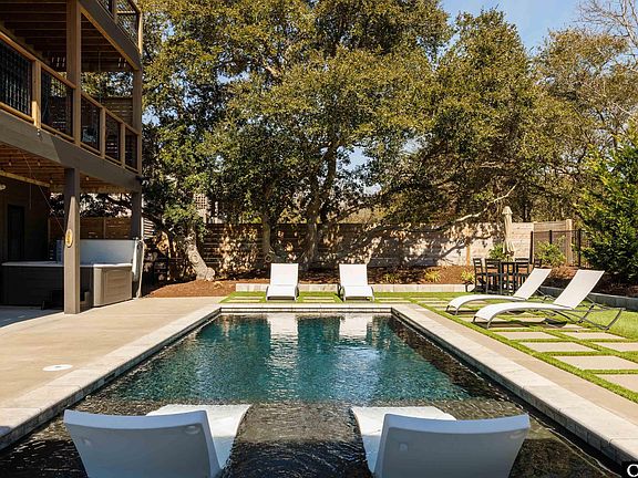 Step outside to a truly SPECTACULAR OUTDOOR PARADISE. The HEATED PRIVATE SALTWATER POOL, designed with a SLEEK DARK LINING and a 7-FOOT TANNING PLATFORM, invites you to bask in the sun, while the adjacent spa offers ultimate relaxation. A fully equipped COVERED GRILL STATION, OUTDOOR KITCHENETTE, AND DETACHED CABANA with bar seating, televisions, and gorgeous black variegated granite countertops create the ultimate entertainment hub. High-end synthetic turf ensures an evergreen, low-maintenance backyard that rivals the finest luxury resorts.  This extraordinary home is a rare find, where high-end craftsmanship meets thoughtful design, just moments from picturesque beaches, fabulous shops and unique dining experiences in Southern Shores and nearby downtown Duck.  Don’t miss your chance to own this luxurious coastal haven. Schedule your private tour today!