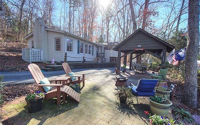 The cottage on the lake you've been waiting for. On desirable Mill Creek on a 1+ acre lot. Great dock system with covered slip and lift. Cozy up to the fireplace with gas logs and enjoy the views. One great big room with kitchen, dining, living areas with vaulted ceiling. All season and weather covered patio. Minutes away from all the new shops and restaurants and grocery stores. Circular drive makes it easy to navigate around. Storage building, and walk-in crawl space storage.
