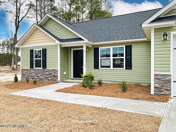 The Courtney Plan by Atlantic Construction is all about one story living with 1280 heated square feet & the split floor plan to meet your needs! Open living area, spacious kitchen, & a patio right off the dining area. The owner's suite features not one, but two walk in closets, and a generous en suite bath. The other two bedrooms share a bath on the opposite side of the home. Verona Acres is a new small subdivision in Verona on the south side of Jacksonville, just a short drive from MCAS New River, Camp Lejeune, Stone Bay, or the beaches of Topsail Island. There will be protective covenants but no HOA or dues. This home should be move in ready in August, so call a Realtor today for more information on this brand new home!