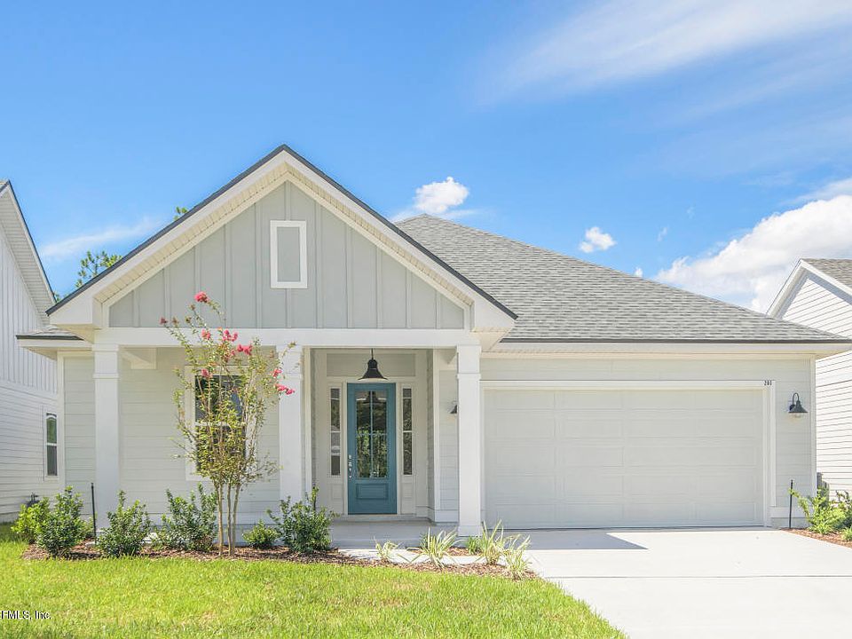 Riverside Homes Farmhouse style Washington floor plan with optional 4th bedroom and 2 full baths is READY NOW. Featuring our gourmet kitchen with stainless steel Bosch appliances including double ovens, gas cooktop and includes loads of upgrades such as white double stack shaker cabinets with glass doors and soft close doors and drawers, white farmhouse sink. Amazing finishes like luxury vinyl planking and custom lighting throughout make this home a must see and won't last long! Call today to schedule personal tour. Floor plan in documents. A short walk to the brand new Crosswater Park and pool area, Schoolyard Park, Nocatee Landing kayak launch and the Coming Soon new Nocatee K-8 all in Crosswater! Builder pays $7000 in closing costs with Preferred Lender.