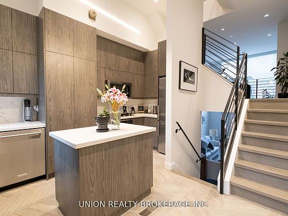 Absolutely stunning townhome in a gated community. A multi level home that is bathed in natural light with both east and west exposures via huge windows with an abundance of living space. This unit is located at the back of the complex which ensures quiet privacy. The well appointed kitchen has plenty of storage and prep space, gas stove, stone counters and a centre island. The living room features a wood burning fireplace, 16ft ceilings as well as a walkout to a west-facing private terrace--a fabulous space for entertaining. The ample dining room overlooks the living room. Hardwood floors throughout. The den can be used as a third bedroom or guests. Spacious primary bedroom on the top floor completes this incredible townhouse. It features a walk-in closet, laundry, 4-piece ensuite As well as a sizeable west-facing sundeck overlooking the city. Off site surface parking. Walk score 95. Property comes partially furnished.