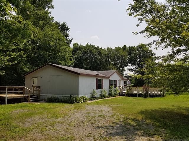 Nice 3 bedroom 2 bath plus large storage shed on 1/2 acre m/l corner lot. Backs to private treed land. Nice open split floorplan. All new paint and flooring throughout. Large master bedroom has walk in closet, glamour bath with separate shower and garden tub. Quick access to Claremore and Pryor.