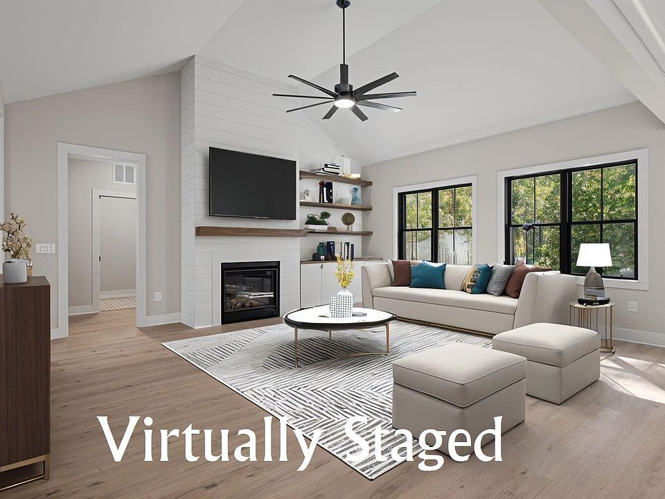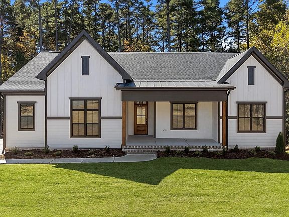 Trabar Homes has done it again! This beautiful new construction offers over 1,800 sqft of thoughtfully designed living space, perfect for entertaining or relaxing by the lake. Enjoy the open layout with LVP flooring throughout the main living areas and bedrooms. The spacious living room features a vaulted ceiling, gas log fireplace, and custom built-ins for timeless charm. The chef's delight kitchen showcases a stunning 7' island, tile backsplash, recessed lighting, stainless steel appliances, and a walk-in pantry. A convenient drop zone is located off the garage, along with a separate laundry room complete with cabinetry and a sink. The private primary suite offers a tray ceiling, a 10' walk-in closet with custom wood shelving, and a luxurious bath featuring a double vanity and a fully tiled oversized shower. Two comfortable guest bedrooms with ceiling fans share a full bath with an oversized vanity and tile surround tub. Enjoy outdoor living from the covered front porch or the screened rear porch overlooking your backyard. Additional highlights include a 2-car side-entry garage and a dock permit already in place - ready for you to build your dream dock on the waters of Kerr Lake!