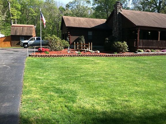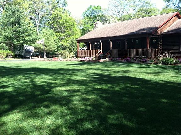 Surrounded by beautiful pine trees and stone walls, this custom designed log home sits on 1.65 acres of land. Enter the home from the inviting front porch into a spacious family room with stone fireplace that opens to your dining room and eat in kitchen. Kitchen renovated in 2016 and features granite countertops and stainless appliances and island. An enclosed heated sunroom is off dining room and kitchen. Master bedroom is ensuite with walk in closet. Two additional bedrooms and laundry area. The home features hardwood flooring, central air, alarm, whole house generator, sprinklers, two car garage and shed.