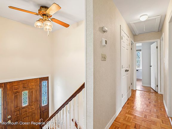 Relax & Stay! Set Back off Road this Beautiful HOME is sure to be a Winner! 3 Bedrooms upstairs & Bonus Room on 1st Floor is Perfect for Office, Playroom or Guest Bedroom. Living Room & Family Room is Perfect for Family Gatherings. You will LOVE the Wood Burning Stove on those Cool Evenings. Kitchen offers Beautiful Maple Cabinetry, Pantry & Direct access to the Wonderful Deck. Plenty of Room for Family BBQ or Just Relax and Enjoy Watching Nature. Buyers will be at ease knowing Roof, Furnace & Hot Water Heater 10 Years New, Washer Dryer Less than 5 Years New, Central Air 1 Year New. All This in Desirable Howell Township! Excellent Schools, Close to Transportation, Minutes to Restaurants, Freehold Raceway Mall & 15 Minutes to Jersey Shore. THIS BEAUTIFUL HOME CAN BE YOURS.. CALL TODAY!