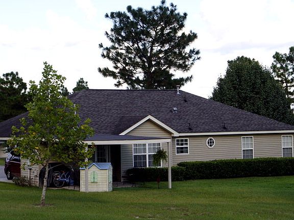 An immaculate, well cared, one owner home in cul-de-sac with extra large lot! A front porch perfect for rocking chairs. Open kitchen/dining area with crisp clean kitchen. Refrigerator to stay with all appliances. Great mudroom entrance easily accessible to laundry room with built-in ironing area. Family room and master bedroom with neutral paint colors and ceiling fans in each room and Berber carpet throughout. Master bedroom with walk-in closet and spacious master bath with separate soaking tub and shower. The lot is adorned with mature landscaping and trees, sprinkler system in front and back of home. Motion lights on exterior of home. 10x10 storage building to stay. Back of property has private access to road.