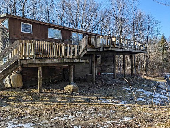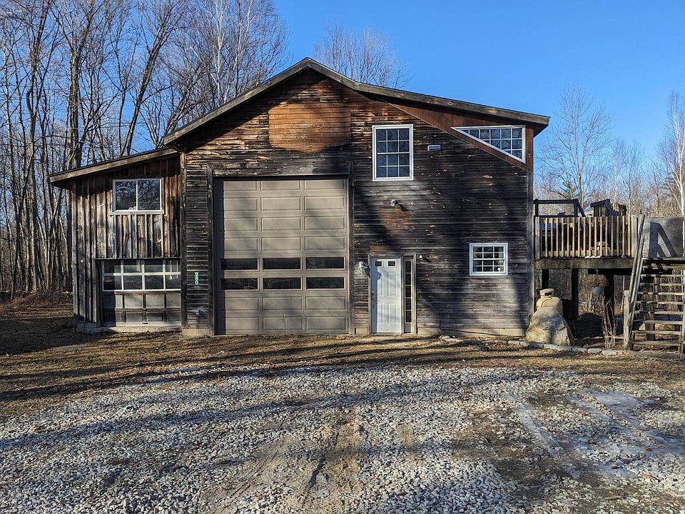 Country Home, Country Life, ....with barns, woods and field. A great place to raise a family, have a full time agricultural business, or be a weekend farmer. This cozy, secluded, 2 bed, 1.5 bath single family home, with an oversized outdoor deck, wood floors, and open concept design, is situated on the 2nd story above a serious man-cave, and/or commercial garage, with plenty of personal and business potential. The large lower level garage has 15' ceiling height, concrete floors, and a industrial 2 post vehicle lift and compressor. There's plenty of work space, and storage room, for all your tools, equipment, and your toys. There's also 12 acres, mostly wooded, with some acreage that's overgrown that could be reclaimed for pasture. Enjoy your 12 acres: raising animals, farming, gardening, hunting, hiking, and more. Only 20 minutes from Rutland and 30 minutes to Pico/Killington and only 2 hours from the Albany Airport.