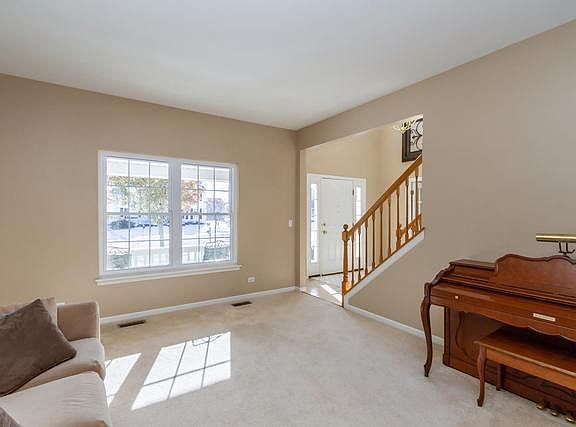 Spacious Muirfield model located in desirable Prestwicke with updates from Top to Bottom! This 4 bedroom home boasts a soaring 2 story foyer, neutral carpet, and fresh paint! Large eat-in kitchen with 42" cabinetry, island, pantry, tile backsplash and quartz countertops with french doors leading to the huge backyard on the corner. Bright family room located off the kitchen with a separate dining room offers plenty of room for entertaining. 1st floor den is a perfect office! Large master suite offers vaulted ceilings and private bathroom with his/hers vanities, a separate shower and soaker tub! Full basement is ready for your finishing touches. New features include Unilock pavers on walkways, patio, and front porch, Carpeting, Sump Pumps, Water Heater, and Air Conditioner! The roof, siding, driveway, and most windows have been recently replaced. Great location, Huntley Schools, Close to shopping and restaurants. Nothing to do but move in!