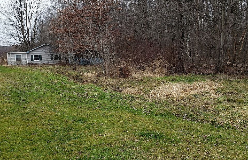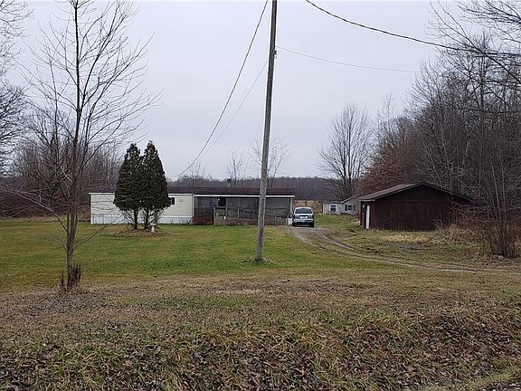 Approximately 40 years old 15 X 65 mobile home with a gable roof. A 8 X 18 enclosed porch 8 X30 covered front porch. There is a 24 X 24 detached garage, 20 X 24 barn ND 8 x 15 utility shed and pond.