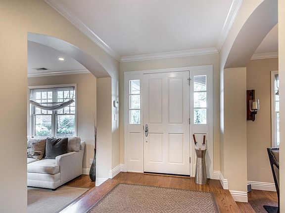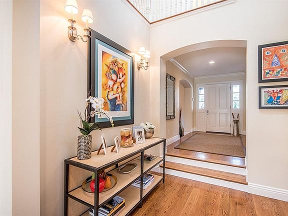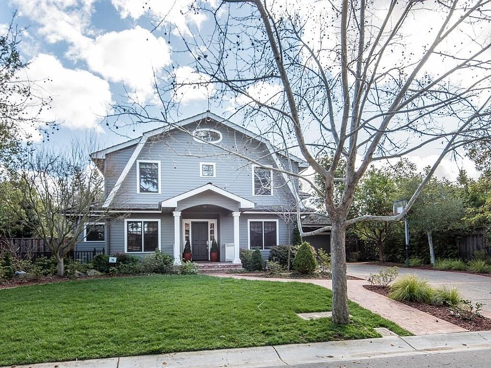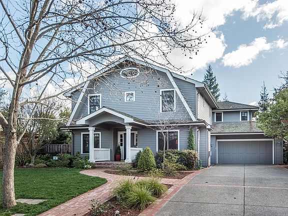 Stunning designer home just 2 blocks from the Village. 5 bedrooms and 4 baths arranged over 3 levels. Impressive curb appeal begins with manicured lawn, a brick walkway, and focal-point portico entrance. Entertaining options include a formal living room with fireplace plus separate parlor with wine bar, tasting counter, wine coolers, and custom racking. Tremendous chef's kitchen, with island and casual dining area, including Carrera marble counters and stainless steel appliances and gas range. Spacious family room with fireplace, fully open to the kitchen and with French doors to the rear of the grounds. Upstairs master bedroom suite has an office/sitting room with gas-log fireplace, two walk-in closets, and en suite marble bath with whirlpool tub, large shower, and separate vanities. Entertainer's rear yard with custom stone spa with waterfall, fire pit, and barbecue center with gas cook top and expansive counter seating. Almost one-quarter acre. Excellent Los Altos Schools