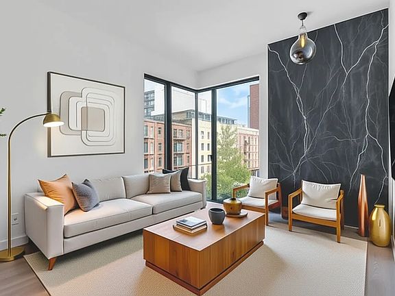 Floor to ceiling windowsSweeping furnished roof deckNeutral tone hardwood flooring