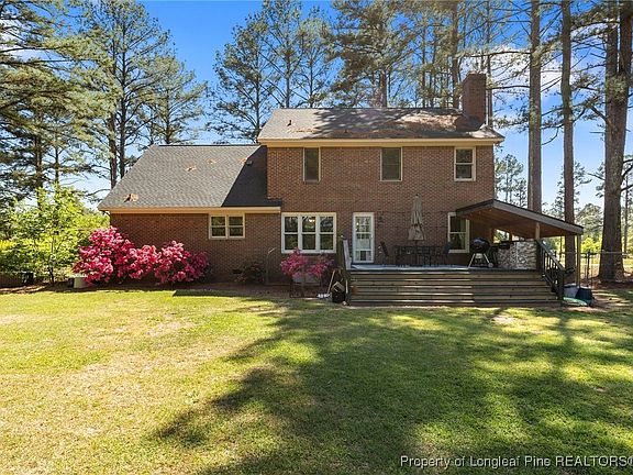 Gorgeous traditional brick two story home on over an acre of land located in the gated private community of Dove Ridge in Spring Lake. The long driveway leads to your two car side entry garage. The front porch welcomes you home and is just ready for you to enjoy those Carolina summer evenings. The main level offers true hardwood floors with a formal dining room, office/den, half bathroom, open great room, additional dining space, large utility room, and charming updated kitchen. Kitchen offers the quintessential farmhouse style butcher block counter tops, tile backsplash and stainless steel appliances. Upstairs offers primary bedroom with generous sized ensuite bathroom and walk in closet, 2 additional bedrooms which share a guest bathroom and large bonus room. Fenced back yard offers a large deck with outdoor kitchen space, and plenty of room to entertain. Mature landscaping includes fruiting persimmon and fig trees, bountiful blueberry bushes, and black cherry tree.