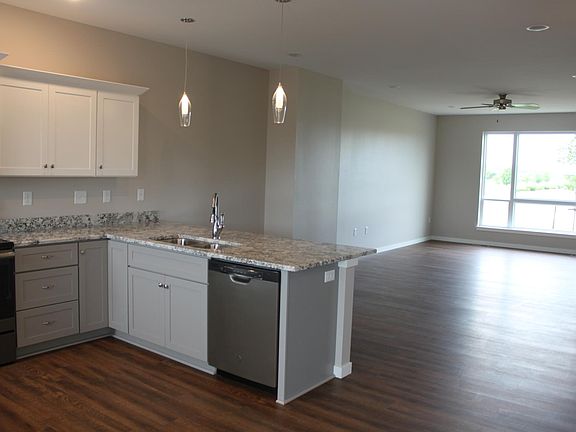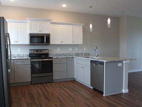 Townhome featuring open floor plan, quartz counter tops and GE Slate appliances. Convenient location: 0.4 miles from North Central Junior High; 0.7 miles from James Van Allen Elementary School; 3.5 miles from Liberty High School; walking distance to the HyVee gas station and future Hy Vee, fitness center and coffee shop. Photos of a similar unit.