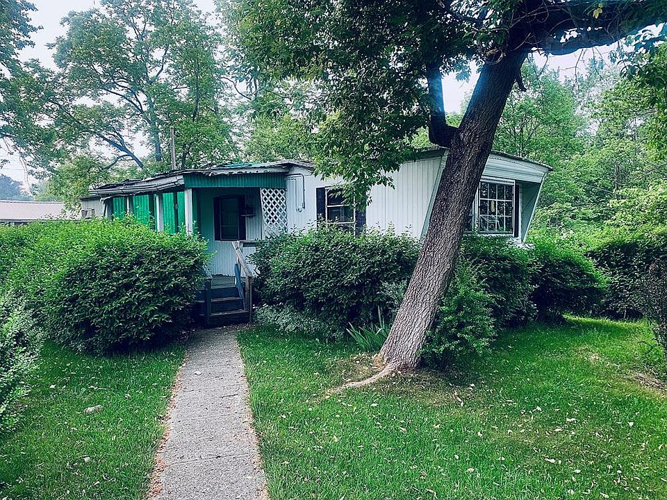 2 Lots, 2 Bedroom Trailer with roofed front porch that is tucked within trees and blooming shrubs. Great opportunity for a nice location on quiet street. Public Water/Sewage! C-L School District. Priced to sell! Cash only.