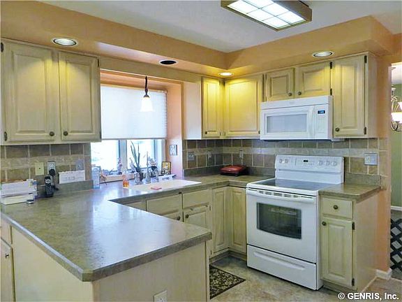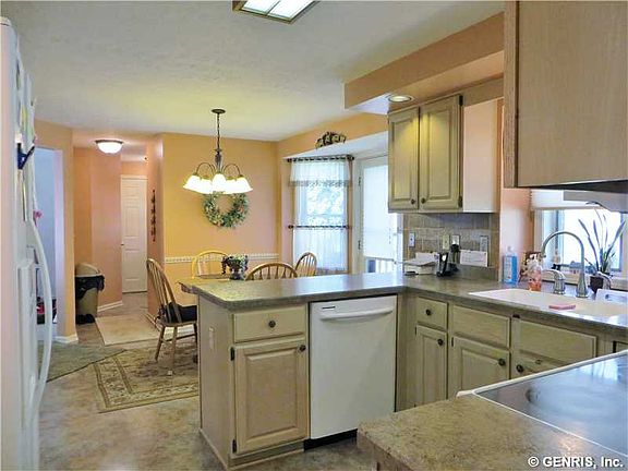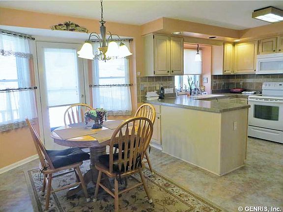 CLASSIC BRICK COLONIAL 3 BDRM, 2 1/2 bath, 2 story foyer w/chandelier & ceramic tile. LR & Formal DR combo. Eat-in kitchen; ALL appliances inc. Family Room w/brick, & gas fireplace. 1st floor laundry w/washer & dryer. Master suite w/full bath, double sinks, Jacuzzi tub & walk-in closet. New Carpet-LR & DR. Partially finished basement w/glass block windows.Deck & Patio leading to private backyard. 2 1/2 car garage w/double wide driveway. 90% Efficient Furnace, A/C, 60 gal HWH. Roof Tear-off 08. 2X6 exterior walls. Double insulated attic. Landscaping and flowering trees. Close to Lake Ontario.