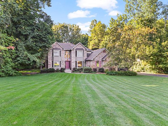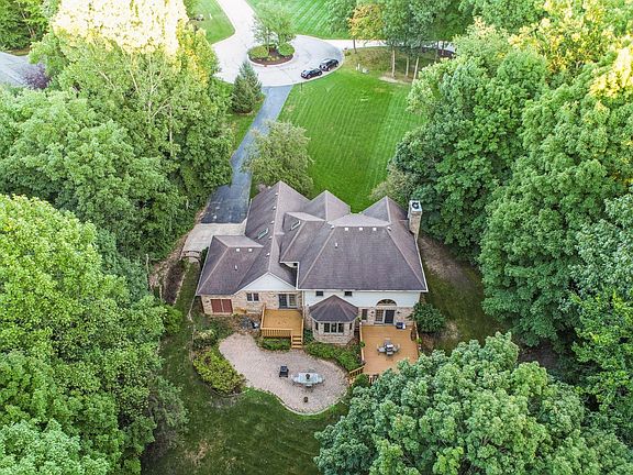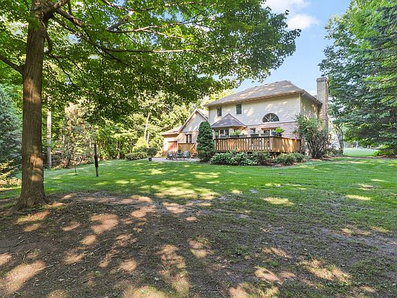 MOTIVATED SELLER offering $2500 towards closing costs. FIVE WOODED ACRES- A custom, 2-story brick home nestled in the woods of the Winderemere neighborhood in Chesterton. Over 4,500 sq ft with 4 bedrooms, 4 bathrooms, plus an office, theatre room, game room, bar and a 2nd kitchen. Main floor primary bedroom with ensuite and French doors leading to your own private deck, while large bay windows, cathedral ceilings and skylights highlight the main floor with natural light and provide picturesque views of the lush woods surrounding the property. A large deck frames the backyard with a patio and fire pit, providing the perfect space to entertain or enjoy the quiet nature of the property.