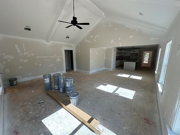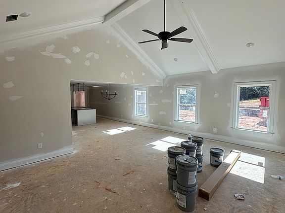 New construction in Young Estates, located on a quiet cul-de-sac just minutes from downtown Hamilton and the community walking trails. This home offers an open floor plan with vaulted ceilings in the main living area, creating a comfortable flow between the living room, dining, and kitchen spaces. The kitchen features granite countertops, a large pantry, and stainless appliances, providing everyday function and ease. The primary suite includes a tray ceiling, double vanity, large walk-in tiled shower, and two walk-in closets for storage and organization. Two additional bedrooms and a full bath allow space for guests, office needs, or hobbies. Enjoy time on the covered back patio with a wooded view that adds privacy and outdoor appeal. Additional features include spray foam insulation, Hardie plank siding, architectural shingle roof, and a single-car garage. A thoughtful layout in a convenient Hamilton location — completion expected soon.