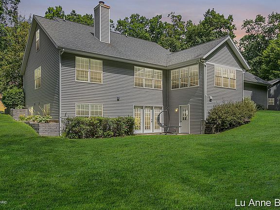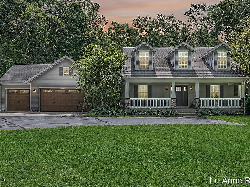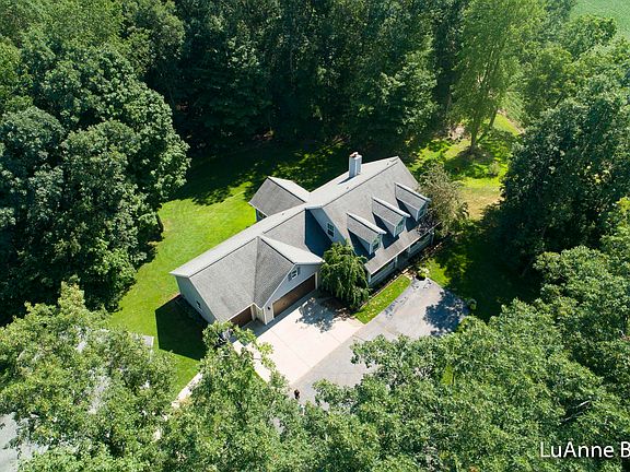 'Welcome Home' to this lovely custom and quality built home on a wooded 2+ acre lot! Enticing is the word . . . from the moment you drive down the tree lined drive, to the charming front porch to entering this meticulously maintained home. Gorgeous wood flooring throughout the main floor living areas, 6 panel solid wood floors and a fieldstone wood burning fireplace in the spacious Living Room. The Dining Room is fabulous - spacious with beautiful large windows and lots of natural light. Pretty kitchen w/pantry, snack bar and stainless appliances. Open floor plan is nice for entertaining - but if you are looking for a quiet place the Den/Bonus/Office space off the entry is the perfect spot. Lovely wooded views from the spacious Master Bedroom w/walk in closet and Bath w/double sinks. Main floor Laundry w/half Bath at the entry to the attached 3 stall garage completes the main floor. Upstairs find a Den/Bonus Room, two spacious Bedrooms w/walk in closet, dormer windows and a sha