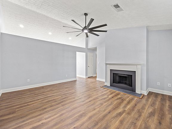 Wood-burning fireplaceUpdated vanity countertopsBeautiful quartz countertopsOpen and inviting layout