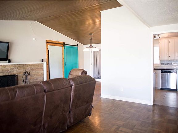 Beautifully updated 4 bed 2 bath home with an oversized corner Lot, great Curb appeal with cedar posts. Open Floor plan. Gorgeous wood ceiling, wood floors amazing large windows in the living room looking out to front yard. 2 sided fire place sitting in the living area, and primary bedroom. Stylish barn sliding door to living and dining area separating the living space from the primary bedroom. Nice kitchen with subway style back splash tiles, stainless steel appliances, granite countertops, floor tiles, cute light fixtures, and a massive backyard! MUST SEE!!