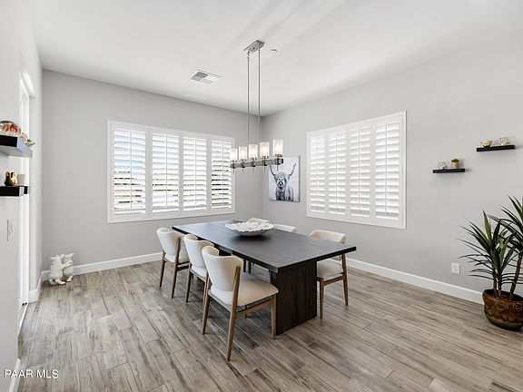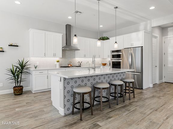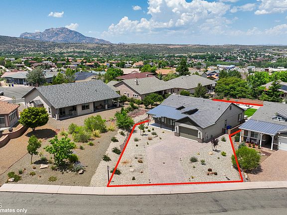 Welcome to this beautiful, highly upgraded home in the Pinnacle Views of Prescott Lakes, built by Ash Dorn and completed in 2022. This stunning 2,260 square-foot residence is one of the largest properties in the neighborhood and boasts a meticulously designed backyard with Astroturf, numerous trees, an elevated fire pit, and a built-in barbecue. The extended patio features newly added gorgeous tile as well as the front entrance and widened driveway. Inside the family room is recently added bar area, complete with a bar fridge and coordinating countertops that match the upgraded cabinetry and quartz countertops found throughout the home.Fall in love with the open floor plan and vaulted ceilings, wood-look tile flooring, with carpet remaining only in the primary bedroom.