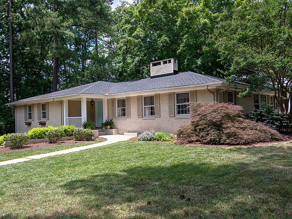Priced to sell! Seller is giving $5,000 towards paint allowance with acceptable offer. Rare ranch in Sunset Hills neighborhood on a corner lot. Main level has 3 large bedrooms with ensuites. Family room with a gas fireplace adjoins the eat-in kitchen with banquette seating and storage. Large screened porch is located off the family room entrance. Two additional rooms can be used as a living & dining room or utilize one for office space. Large 2025.7 sq. ft. basement with a private entrance has endless possibilities. This space can function as a separate apartment. With 2 bedrooms, full bath, office, large den and rec area with kitchenette, this level of the home gives homeowners the option for a teen hang out, in-law suite, office space, etc. Basement access to 1 car garage, second driveway and storage. Easy access to The Village District, North Hills/Midtown, Five Points, downtown Raleigh, RDU and RTP. Underground electric fence.