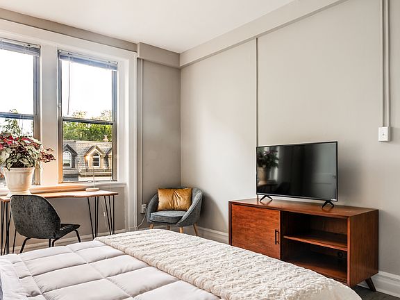 Welcome to this newly renovated & furnished studio, 1-bathroom home at The Muriel. Nestled in the heart of Woodley Park, The Muriel is a beautifully restored 1920s-era apartment building, thoughtfully reimagined in 2023 to blend timeless historic charm with modern-day convenience. This spacious studio has a full size kitchen separated by a wall. The kitchen is equipped with all the necessary appliances plus more. There's a gas stove, fridge & freezer, dishwasher, microwave, disposal, and a Keurig Coffee Maker. Fully stocked with cookware, utensils, and dishware everything you need to cook and dine comfortably. Apartment Features: Queen bed Desks, chairs, and ample closet space Smart TV with streaming services including Netflix and Hulu High-speed Wi-Fi and all utilities included in the rent On-floor laundry (coin-operated or app-enabled) Central heating and air conditioning Building Amenities: Secure, keyless entry via app and code Amazon package lockers in the lobby Bike storage area Pet-friendly accommodations (with approval and applicable fees) On-site parking available for $300/month (limited availability) Unbeatable Location: Just steps from the Woodley Park-Zoo/Adams Morgan Metro station (Red Line), The Muriel places you within easy reach of The Smithsonian National Zoo, Rock Creek Park's scenic trails, restaurants, cafes, and local shops along Connecticut Avenue, Dupont Circle, and Georgetown. Whether you're drawn to the neighborhood's vibrant energy or its quiet green spaces, The Muriel offers the perfect balance of urban accessibility and peaceful retreat. ESA and service animals are welcome with the appropriate documentation. Pets are welcome for a non-refundable, $450 fee. There is a non-refundable, $45 Rental Application. All utilities are included Flexible lease terms!