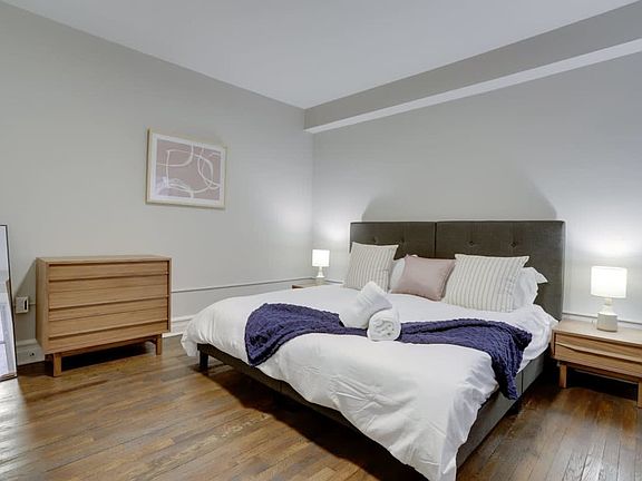 This 3-bedroom, 1-bathroom home at The Muriel offers a king-size bed and two twin-sized beds, which can be converted into a king-size bed if preferred. If you wish to convert the king-size bed into two twin-sized beds, please request this at least 48 hours before your arrival. In the living room, enjoy watching your favorite movies on the Smart TV. If you need to work, the home is equipped with a desk, chair, and light. Enjoy a home-cooked meal or takeout at the dining room table. The kitchen is fully equipped with a gas stove, fridge, dishwasher, microwave, disposal, and a Keurig Coffee Maker. It also includes cooking items such as pots and pans, a baking tray, cooking utensils, knives, a cutting board, a strainer, and mixing bowls. There are 4 sets of plates, glasses, mugs, bowls, and flatware. The home includes a vacuum, broom, Swiffer, and ironing board. Each floor has a shared washer and dryer. There is one on-site parking space available for purchase on a first-come, first-serve basis. If you are booking a flat that allows pets, there is a one-time, non-refundable pet fee of $450. A Pack and Play and/or high chair can be provided for a $25 rental fee, and these must be reserved in advance. Woodley Park, wealthy and bustling, is one of Washington DC's most prestigious neighborhoods. Just outside the central business district on the edge of Rock Creek Park, pre-war apartment buildings and lively restaurants line Connecticut Avenue, while pricey townhomes and private schools fill the side streets. The Metro (Woodley Park Zoo / red line) is a few hundred feet away, providing easy access to the city. Rock Creek Parkway is a few blocks away, offering a fast and scenic drive to the monuments, US Capitol, and Northern Virginia (DCA Airport, National Landing) and fantastic access to the trails and nature of Rock Creek Park itself. Connecticut Avenue is a prestigious corridor through the wealthiest neighborhoods of DC linking downtown to Bethesda, Maryland. Parking is on the street in the neighborhood around the building, and assistance is available for applying for a parking permit. The home offers contactless, seamless, and easy self check-in. You'll receive your check-in information 48 hours prior to your arrival, and a unique check-in code will be sent to you 8 hours before your arrival. Smoking of any kind (marijuana, cigarettes, or vaping) is not permitted anywhere in the interior of the building or within fifty feet of the building, including outdoor spaces. A $500 smoking fee will be charged if the odor of smoke is reported. Parties and events are strictly prohibited. All homes are equipped with noise monitoring devices, and noise levels exceeding normal levels are grounds for ending your stay. In the event of excess noise, music, gathering, or parties, a representative will respond, and your reservation will be terminated without refund. Exterior cameras record the exterior and common areas, including all entries to the building. Certain items should not be flushed down the toilet or put down drains or in the garbage disposal, as plumbing issues caused by these will result in charges. These items include cooking grease, food, coffee grinds, feminine products, baby wipes, dental floss, Q-tips, diapers, pills, paper towels, tissues, and coffee grounds. The home may require unexpected or scheduled preventative maintenance, and access may be required with 24-hour written notice. The home is equipped with a desk, chair, and light for your work-from-home needs. A laptop computer is not included.
