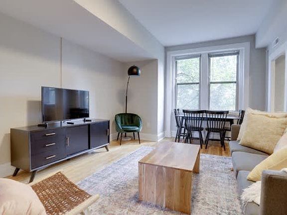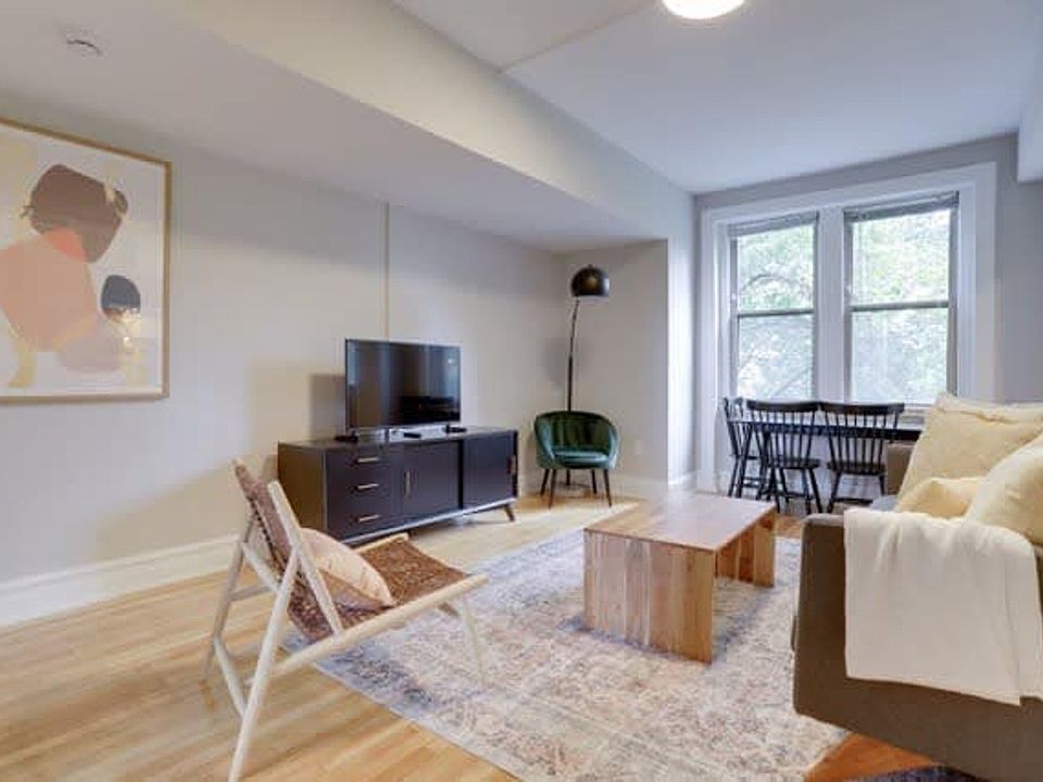 Welcome to this 3-bedroom, 1-bathroom home at The Muriel. This home features one king bed and two twins, with the option to convert the king-size bed into two twin-size beds for an additional fee of $100. Pets are welcome and parking is available. In the living room, enjoy watching your favorite movies on the Smart TV with Netflix and Hulu ready to go. If you need to work, the home is equipped with a desk, chair, and light. Enjoy a home-cooked meal or takeout at the dining room table. The kitchen is fully equipped with a gas stove, fridge, dishwasher, microwave, disposal, and a Keurig Coffee Maker. It also includes cooking items such as pots and pans, a baking tray, cooking utensils, knives, a cutting board, strainer, and mixing bowls. There are 4 sets of plates, glasses, mugs, bowls, and flatware. The home also includes a vacuum, broom, Swiffer, and ironing board. Each floor has a shared washer and dryer that are coin-operated or can be used cashless via an app. Pets are welcome with a one-time, non-refundable pet fee of $450. A Pack and Play and/or high chair can be reserved in advance for a $25 rental fee. There is one on-site parking space available for purchase on a first-come, first-serve basis. Woodley Park is one of Washington DC's most prestigious neighborhoods, located just outside the central business district on the edge of Rock Creek Park. The area is filled with pre-war apartment buildings, lively restaurants along Connecticut Avenue, and pricey townhomes and private schools on the side streets. The Metro (Woodley Park Zoo / red line) is just a few hundred feet away, providing easy access to the city. Rock Creek Parkway is a few blocks away, offering a fast and scenic drive to the monuments, US Capitol, and Northern Virginia, as well as access to the trails and nature of Rock Creek Park. Connecticut Avenue serves as a prestigious corridor linking downtown to Bethesda, Maryland. Smoking of any kind is not permitted anywhere in the interior of the building or within fifty feet of the building. A $500 smoking fee will be charged if the odor of smoke is reported. Parties and events are strictly prohibited, and noise levels exceeding normal levels are grounds for ending your stay. Noise monitoring devices are installed, and exterior cameras record common areas and entries. Certain items should not be flushed down the toilet or put down drains, as plumbing issues caused by these will result in charges. The home may require unexpected or scheduled maintenance, and access may be needed with 24-hour notice. Check-in is contactless and seamless, with information provided 48 hours prior and a unique code sent 8 hours before arrival. A $100 fee will be assessed if mailbox keys are not returned upon check-out. The home is equipped with a desk, chair, and light for your work-from-home needs. A laptop computer is not included.