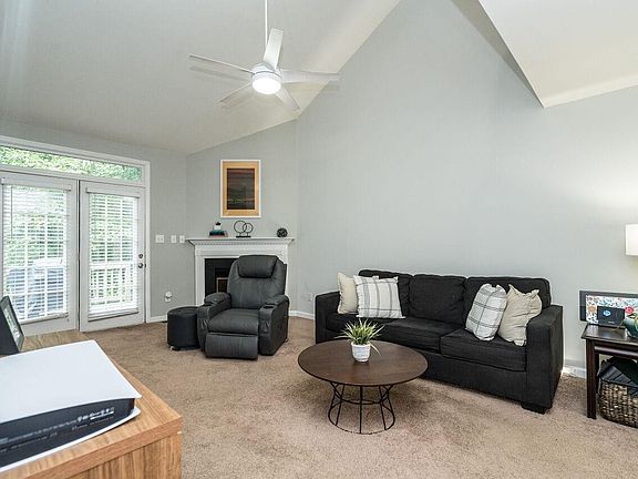 End unit townhouse near NC State with 1,500~ square feet, 1st floor owner's suite & two more bedrooms upstairs! The large and open living room with vaulted ceiling is open to a 2nd floor landing, features a gas fireplace and opens to a large and private deck with room for a grill and additional storage. The kitchen features 2-tone cabinets, granite countertops, glass top range & dishwasher, backsplash, laundry room, and variable color LED lighting. A separate dining room with custom lighting opens into the living room. Upstairs provides 2 private bedrooms, a full bathroom and several large closets. Assigned parking right outside the front door. Conveniently located near NC State, Lake Johnson and downtown Raleigh. These move fast, don't wait!