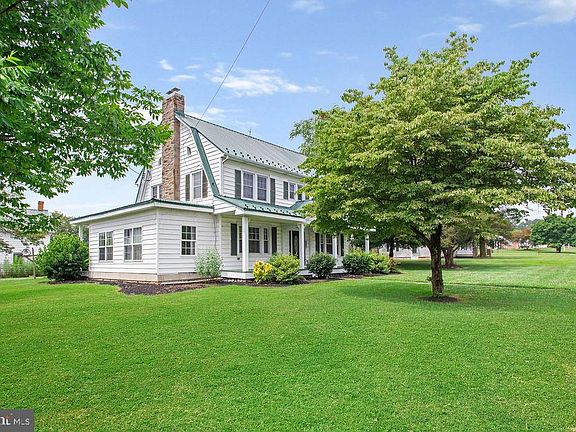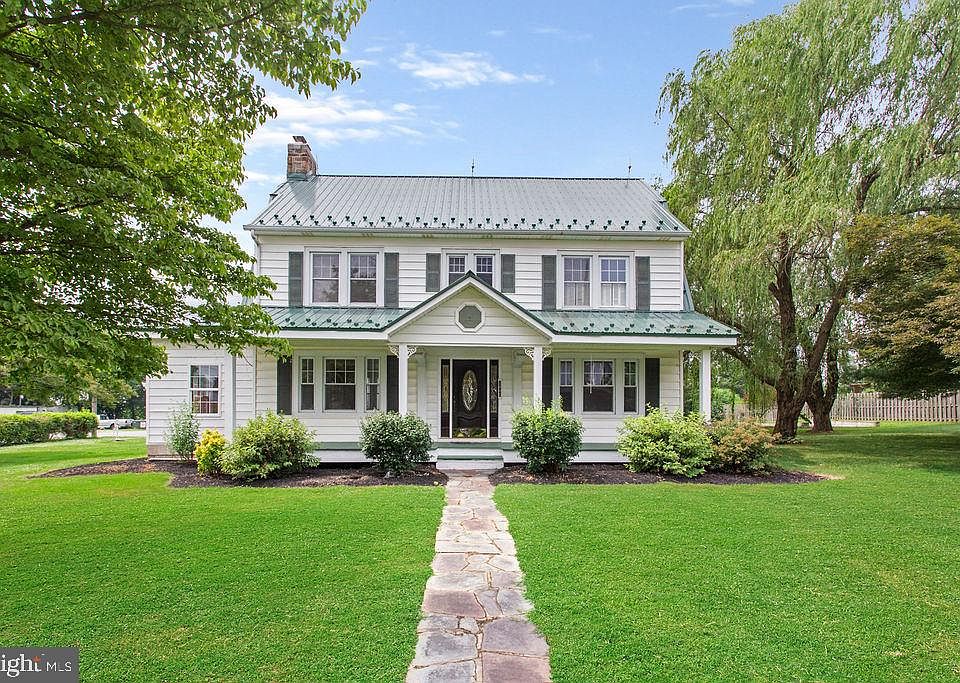 Classic 2.5 story Colonial home with front and rear porches. Exterior is mostly maintenance free with recently installed metal roof. 18 x 22 composite deck in rear of home. Huge driveway and concrete pad for future garage. Huge level corner property with 24 x 60 two story barn with 12 x 22 addition. Barn is frame/metal roof with concrete floor and divided into two rooms. Full second floor with high ceilings. Home has large rooms with redone hardwood floors and living room with stone fireplace. Beautiful foyer with open stairway. Second floor has two bedrooms with bath plus master bedroom with private bath and jet tub. Third floor is finished with lots of built in bookcases and desk. Full basement with outside Bilco door exit and cedar closet.
