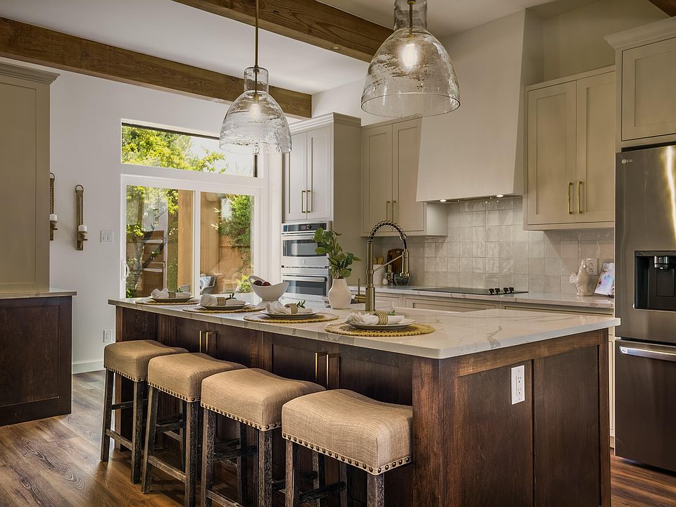 - Beamed Ceilings, Wet Bar, Breakfast Bar, Ceiling Fan(s), High Ceilings, Kitchen Island, Main Level Primary, Shower Only, Separate Shower