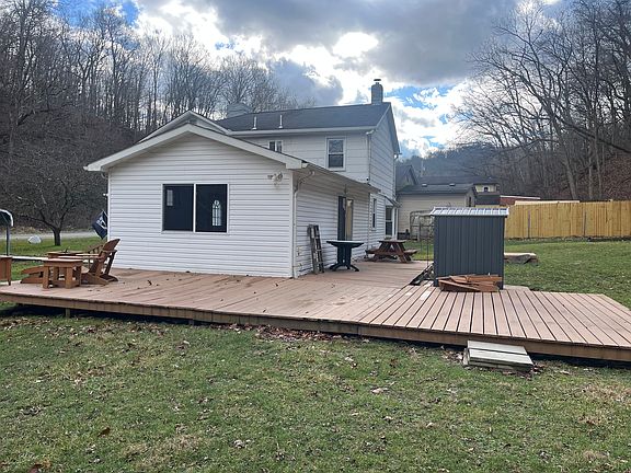 Nestled on nearly one acre of beautiful land, this tranquil country farmhouse-style home offers a secluded retreat adjacent to a wooded area and a creek, teeming with wildlife. Deer and turkey are frequent visitors as well as a number of other types of wildlife. There is no hunting or shooting allowed near or on this property. The home has been recently updated with brand-new carpeting and paint throughout, this spacious abode features a modern addition, boasting a large living room with sliding doors that lead to a wrap-around deck, perfect for enjoying the outdoors. The fully equipped kitchen provides ample space to gather and has a stunning bay window to watch birds and wildlife while you sip your morning coffee, Three freshly painted cozy bedrooms and a bathroom grace the upper level. Downstairs, a large bedroom with a screened-in porch awaits, along with a half bath and shower ideal for those who may prefer single-level living. A downstairs laundry room makes staying on one floor easy. A bonus room alongside the kitchen is perfect for a home office or storage. Covered parking for two cars in the driveway ensures convenience. Ideal for nature enthusiasts, outdoor adventurers, and those seeking a tranquil country lifestyle, this farmhouse retreat is a true gem sitting just 2 miles from Round Hill Park and 1 mile from the Great Allegheny Passage Bike Trail. A family home for over 50 years, the owner takes great pride in making sure this home will be well taken care of by its renters, who will be responsible for grounds maintenance, snow removal and upkeep of this beautiful property as well as all utilities except garbage collection. This area has very little cell service. Wifi calling or a landline is highly recommended. The entrance and first floor is accessible; ideal for a walker or wheelchair. This older farmhouse-style home is heated with oil. Electric, water and sewage payable by the tenant as well. This home does not have a basement. Please complete a Zillow application before requesting a viewing. Thank you.
