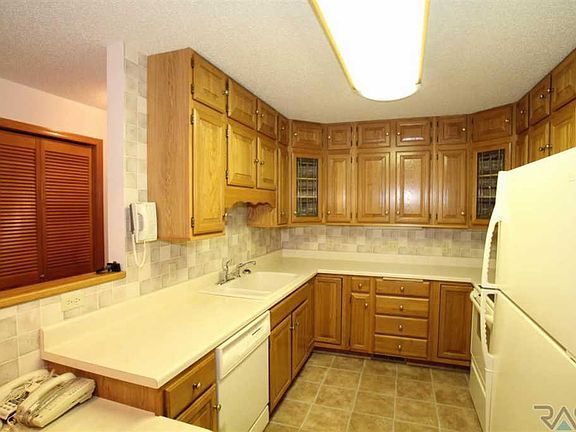 Beautiful 3rd Floor Orchard Place Condo, Next to Avera Fitness Center, 2 Bedrooms plus an office, 2 Bathrooms, Laundry room, Living room with quality carpet and a slider to nice deck overlooking mature trees. Nice kitchen with tall upper cabinets. Breakfast counter to eat at plus a large dining area with a built in hutch. This is the front building and unit is on the backside. Overlooking trees. 2 Stall finished garage with Closet AND a storage room in Hallway. The building has an elevator. HOA covers lawn mowing, snow removal, ext building maint, Building Insurance, water/sewer and garbage. $225/mo This building has Steel siding and Brick.