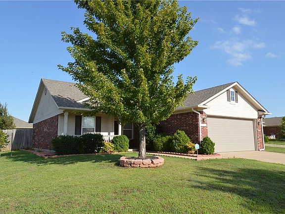 Wonderful 3 bedroom home in Fountaingrass with many extras! Large corner lot with fruit trees: Enjoy fresh figs from 3 fig tress and one pear tree! Backyard includes covered patio, privacy fencing, large storage building, garden areas & rain barrels! Storm shelter in the garage. Kitchen includes built in microwave, eating bar, pantry and linen closet! Very clean, well cared for home with a/c and heat replaced 2017, roof replaced 2013. Guttering, great landscaping! Great location for ease of access to all parts of Oklahoma City. Mustang public schools! Easy to come and view this home!