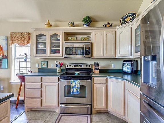 Your chance to own a beautiful 3 bed with large office on a corner lot on a quiet cul-de-sac in the coveted Coffee Creek neighborhood. Peaceful area with 2 pools, exercise rooms, parks, and cabanas. Enjoy trails surrounded by trees and lakes with plenty of fish, turtles, and birds. Conveniently located next to stores and freeways and walking distance from Edmond public schools. Natural light, large spaces, plenty of storage, and a gorgeous 3 sided gas fireplace are the highlights of this home. The home also boasts lovely scraped hard wood floors and tile in most rooms. The beautiful kitchen has natural maple cupboards and plenty of storage and counter space, and all 1 year old stainless steel appliances stay! 1 mo. old washer/dryer stay! The bedrooms are spacious and the owners suite includes a relaxing jetted tub! Drive into your large 2 car garage with built in shelving on both sides, a large attic with plenty of storage, and a storm shelter.