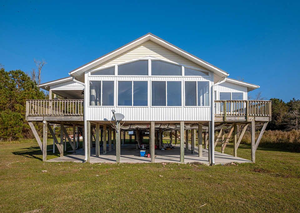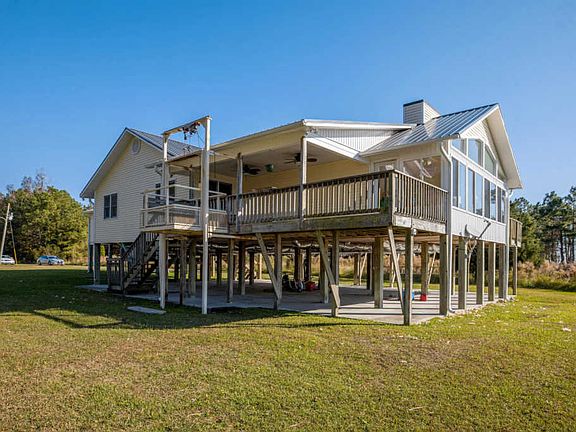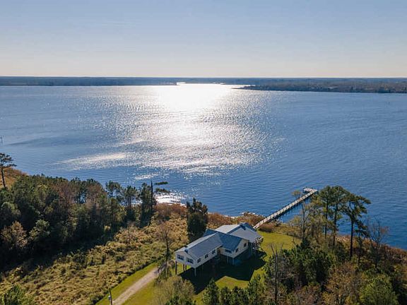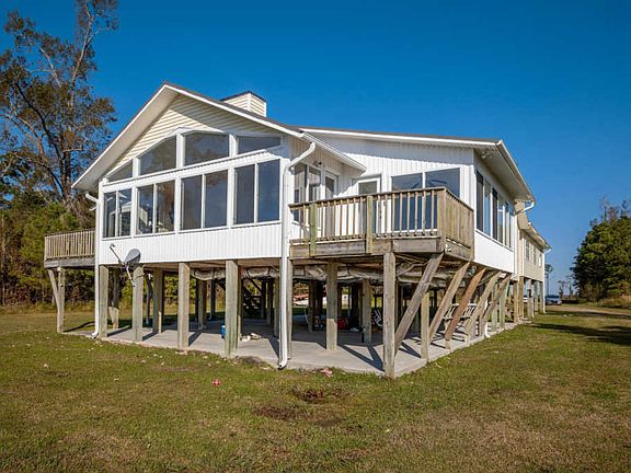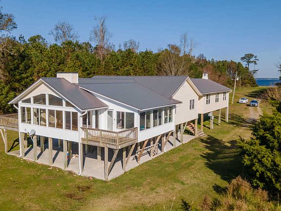 This beautiful 4 BR 2 BA PLUS 1 BR/1BA Detached Apartment with 2 acres on the water is so private and large. This home features large open kitchen and living room; sunroom, 2 large decks, beautiful yard with concrete pier. Plenty of room to entertain. Close to the intercoastal waterway and ferry. Beautiful water views! Waterfront view from the main home and water view from the detached apartment!
