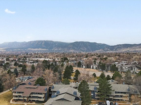 Premium location with views of the flatirons from every window and patio. Third floor penthouse unit with TWO deeded parking spaces located right in front of the building. Penthouse/top floor unit featuring an open floor plan, end unit with 2 bedrooms and 2 bathrooms. Primary suite has it's own private attached bath with walk in tile shower, granite countertops and tile floors. The kitchen features granite slab counters, tile floors and tile back splash. Immaculate unit that is completely move in ready. Room in the price to make some cosmetic improvements to fit your style but nothing needs to be done to live comfortably. Clean, well maintained and has updates from a 2010 remodel. This complex has a community pool and is located across the street from Safeway and tons of shops and restaurants plus the bus stop is located on the corner of this complex. Great location and easy Boulder travel by bus, bike or walking. Only 1.7 miles to 29th street mall and Trader Joes, 2.1 miles to CU Boulder main campus, 2.9 miles to pearl street, 1.1 miles to Cottonwood trailhead, 3.4 miles to Mount Sanitas and 3.8 miles to Boulder Reservoir. Priced to sell and tons of value!!! I think it is important to mention the parking again as it is only of a couple that have TWO reserved spots. One is a carport directly in front of the building and the other is a parking space directly in front of the building...you can see both from the patio. Your HEAT, TRASH, WATER, SEWER, INSURANCE, POOL all all included in the monthly fee.