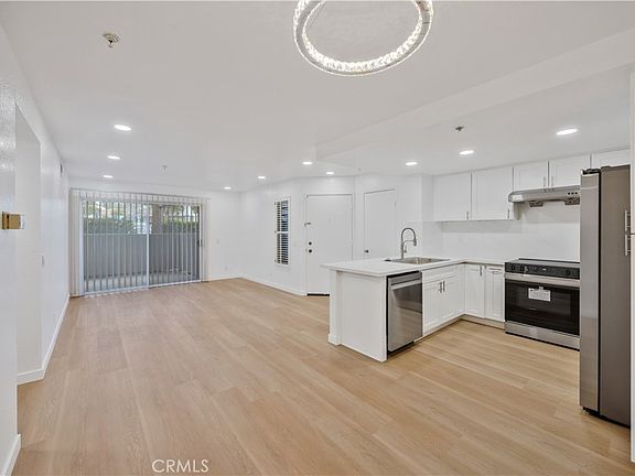 Welcome to this beautifully remodeled lower SINGLE-LEVEL condo located in the highly sought-after Tustin Ranch. This 678 square feet 1-bed and 1-bath home is within walking distance to the elementary school, Tustin Sports Park and Ralphs's Supermarket. Brand New luxury vinyl floors, a fresh coat of interior paint, new baseboards, LED recessed lighting, and an open-concept layout that flows seamlessly into a fully remodeled kitchen. The kitchen offers quartz countertops, white self-closing cabinetry, an oversized Kohler stainless steel sink, and brand-new stainless-steel appliances, including an electric induction stove, hood, dishwasher, and refrigerator. An elegant chandelier enhances the dining room, making an inviting space that feels like a home. The spacious bedroom includes a large walk-in closet with built-ins, high-end custom shades, and direct access to a private patio shared with the living room, ideal for relaxing or enjoying your morning coffee. The primary bathroom features a brand-new marble-like walk-in shower with elegant plumbing fixtures, matching quartz countertops, white cabinetry, dual sinks and Kohler vanity lights. Brand new washer/dryer inside the unit. Additional highlights include central A/C and two storage units on site. The detached one-car garage offering secured parking, brand new epoxy floors, and extra storage. Residents enjoy resort-style amenities such as sparkling pool, spa, a fully equipped fitness center, clubhouse, and playground. With The Market Place and all of the great restaurants are only minutes from your door, this home offers the perfect blend of comfort, convenience, and lifestyle. Pristine property for immediate move-in!