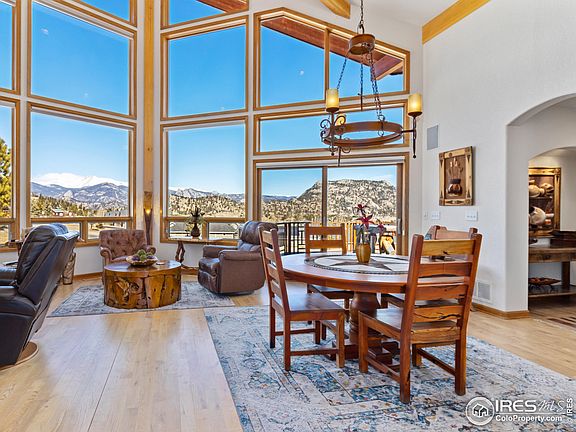 Immaculately maintained and ready to enjoy, this custom-built home in desirable Kiowa Ridge offers over 3000sf of beautifully finished living space on a spacious corner lot of 1.17/acres. Enter into a grand greatroom with soaring ceilings and a wall of windows that captivate you with a spectacular view to the snow-capped peaks in Rocky Mountain National Park. A chef's kitchen with a stunning granite, polished travertine flooring, stainless appliances and lots of storage. Main level primary suite is an escape in itself, with great views, custom walk-through closet and new spa-like bath with hammered copper soaking tub, oversized shower and heated floors. Upstairs, you'll find a versatile loft area, two guest rooms with a full bath, as well as a bonus room for home office, storage or perhaps a yoga/meditation room or hobby studio. Expansive deck offers panoramic views and gorgeous sunsets. Lots of storage in lower level and attached 2-car garage. Like new and below replacement cost at $1,250,000!