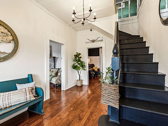 Your dream farmhouse is here! All new windows and a gorgeous remodeled kitchen. All new wood flooring throughout, remodeled bathroom/laundry room and new wood-burning fire stove. New roof, extra large dining table made out hundred-year-old barn wood, conveys. Backyard has Historic out buildings such as mamas kitchen and a smokehouse. Ham radio, 3 donkeys and one sheep convey as well. Current owners have spent 300K in upgrades. List price reflects some projects remain such as updating sunroom and side porch. Come and add your own personal touches to this incredibly unique and historic home!