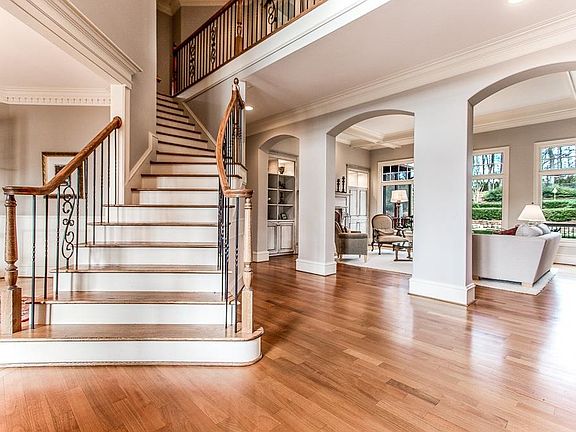 - Interior: 10 ft+ Ceil Main, 2-Story Foyer, Entrance Foyer, Hardwood Floors, Walk-In Closet(s), Bookcases, Exposed Beams
