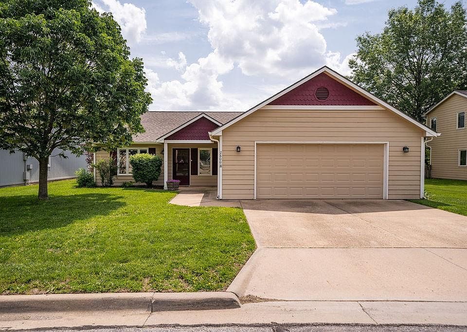 This wonderful home has a spacious open floor plan perfect for having family and friends over. Beautiful brick fireplace. Relax in the screened porch while reading a book or just unwinding with a drink after a long day with no homes behind, so just enjoy the view. Lovely natural area behind the home with a creek. Brand new impact resistant roof in 2022. New microwave. Kitchen has ample storage with a pantry and an end island. Primary bedroom has a large walk in closet and an en suite bathroom with separate bathtub and shower. Carpets just cleaned. Located in a great neighborhood with easy access to shopping and restaurants. Perfect location for commuters with easy access to the Southwest Trafficway, highway 59 or just a short drive to be able to get onto 1-70. Our beloved Clinton Lake is just a short drive away. HOA covers lawn mowing of the east natural area, common grounds and playground. Ready to move in!