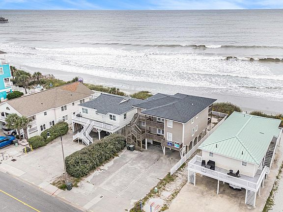 Welcome to your dream getaway! This stunning 6-bedroom, 4-bathroom oceanfront home is nestled in the highly desirable Cherry Grove section of North Myrtle Beach. Perfect an investment property, this unique abode boasts two separate living spaces, each with its own entrance, featuring 3 bedrooms and 2 bathrooms, a full kitchen, and a washer/dryer for your convenience. Maximize your rental income potential with dual living areas that mirror each other in layout and features. The kitchens are generously appointed with ample cabinet and countertop space, beautifully finished with granite countertops. These kitchens are perfect for preparing meals while on vacation, allowing you to enjoy home cooked meals while soaking in the beach atmosphere. Enjoy lovely wood floors throughout the kitchen and all three bedrooms. There is a large living and dining area ideal for entertaining friends and family, creating a welcoming space where memories are made. Each bedroom is spacious, offering plenty of space for furniture and personalization. The master bedroom, situated in its own wing, offers a private retreat featuring a en-suite bathroom complete with a walk-in shower. The guest bathroom conveniently includes a shower-tub combo. Step outside to your spacious deck, where breathtaking ocean views await. Each unit also includes its own charming front porch, perfect for savoring the coastal breeze. An additional heated ground-level area currently serves as storage and extra laundry space, adding to the home's practicality. Parking is a breeze with a large carport underneath the home, accommodating up to 6 vehicles comfortably. This oceanfront gem is not just a residence; it's a lifestyle. The home is also being sold fully furnished, making it an effortless transition for new owners. Whether you're looking for a forever home, a vacation spot, or an investment opportunity, this property is ideally situated near some of North Myrtle Beach's finest dining, shopping, golf, and entertainment options. Don't miss out on this incredible opportunity-schedule your showing today!