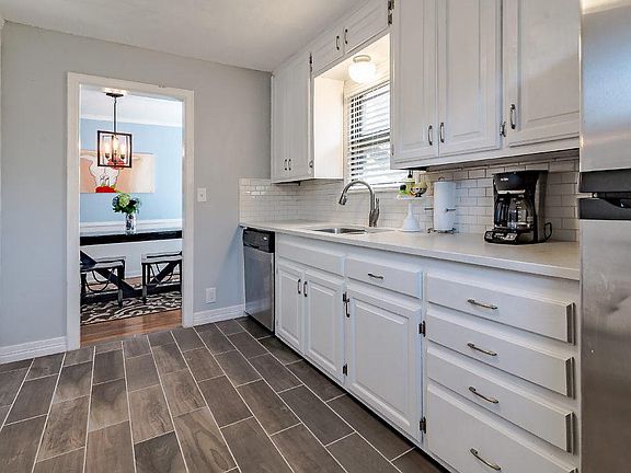 Terrific remodel in highly desired Treadwell Grand View neighborhood. Sparkling kitchen with quartz counter tops, subway tile back splash and floor tile. New light fixtures throughout. Updated bathroom with new tiles and plumbing fixtures. Traditional hardwood floors in the living and dining room along with new carpet in the bedrooms. Charming porch space with cedar posts and cedar shutters. Mature red maple tree in the front along with mature trees in the spacious backyard. Plus outdoor shed to store lawn equipment. Close to grocery shopping and entertainment and a stone's throw from Nichols Hills. Tenant responsible for lawn care and utilities