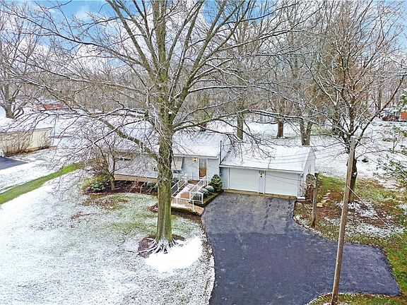 Ring the New Year right with this fantastic Cortland ranch! If your resolution included more space, then look no further as this sprawling three bedroom has it in spades, starting with a massive lot that extends back to an additional storage shed. The two-car garage features a third rear door for easy pull-through access next to the expansive rear patio where you can take in the scenic views. Or simply relax in the rear sunroom, set just outside the kitchen. A ramped entry way makes handicap access a breeze as it leads into a carpeted living room, lined in floor to ceiling windows. Brick accent work leads into the robust kitchen where built-in cabinets join a blend of stainless appliances and butch block-look countertops. A formal dining room separates the main hall from the massive master bedroom suite, boasting a private half bath and oversized closet. The main hall takes you past a charming full bath while additional built-in storage divides the pair of remaining bedrooms. Below, a full basement offers up plenty of storage space with a bonus shower area.