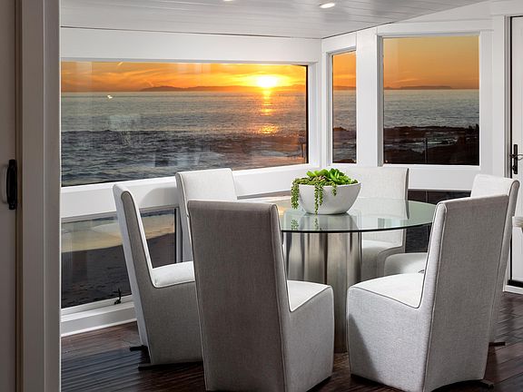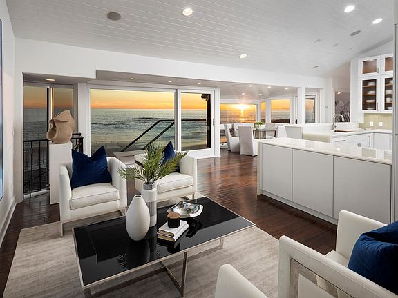 Sitting front and center on prestigious Victoria Beach, this one of a kind multi-family property epitomizes California luxury. As the Pacific Ocean gracefully laps on the shores in front, this thoughtfully designed four bedroom, four bath main home takes full advantage of the white water, coastline and Catalina Island views. Walls of windows and sliding glass doors meet stunning beachfront patios with an open kitchen boasting warm woods overlooking the dining area. A separate great room with additional living area are custom tailored for entertaining. Recently updated bathrooms feature luxury amenities including custom tile work and top of the line spa fixtures. Two in-law, guest or rental units sit above the main house on this nearly 10,000sqft lot, optimizing privacy and captivating ocean views all of their own. Both 2 bedroom, 2 bath units are tastefully updated with hardwood floors, recessed lighting, skylights, raised ceilings, and multiple fireplaces adding to the comfortable and bright design. Walking distance to local restaurants and the world renowned Montage Laguna Beach.