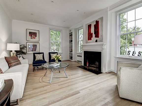 This beautifully renovated 3BR/3BA end unit townhome is ideally located in the East Village, Georgetown. Hardwood floor and crown molding throughout. The main floor boasts a large sun drenched living room with fireplace, bedroom and full bath. The upper level includes the master bed & bath as well as a secondary bedroom and 3rd full bath. Lower level has a beautiful re-done kitchen with stainless steel appliances. Elegant and bright dining room with double doors leading out to a gorgeous walled patio with extensive landscaping and hardscape complete with water feature and private garage access. Updates include: New metal roof in 2018, Heat system is radiator and gas and was installed 2018. AC system installed 2015. Also; water purification system installed for the entire house. Garage parking on property. Light and bright. Enjoy this quintessential Georgetown home.