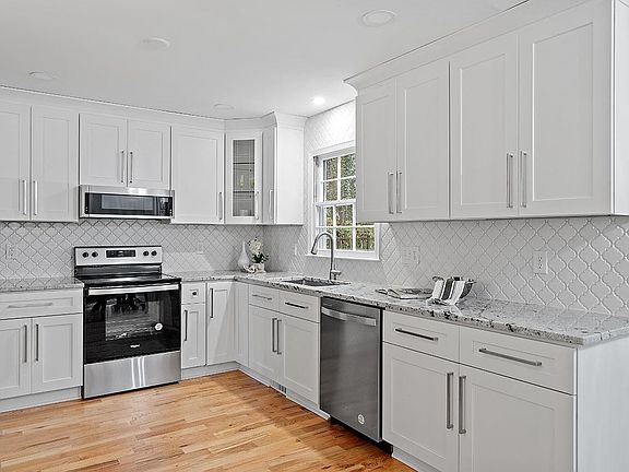 Gorgeous 4bd + BONUS in sought after Hampton Oaks! Features a custom designed kitchen with new shaker cabinets, tile backsplash & stainless steel appliances. Stunning new hardwoods & designer paint & carpet. Includes Formal dining & living/office. Owners suite with tile walk in shower. Deck overlooks flat back yard. New windows installed 2022. Room to add garage/ADU on left side. Convenient to North Hills, Downtown Raleigh, & highways. Move in & enjoy!